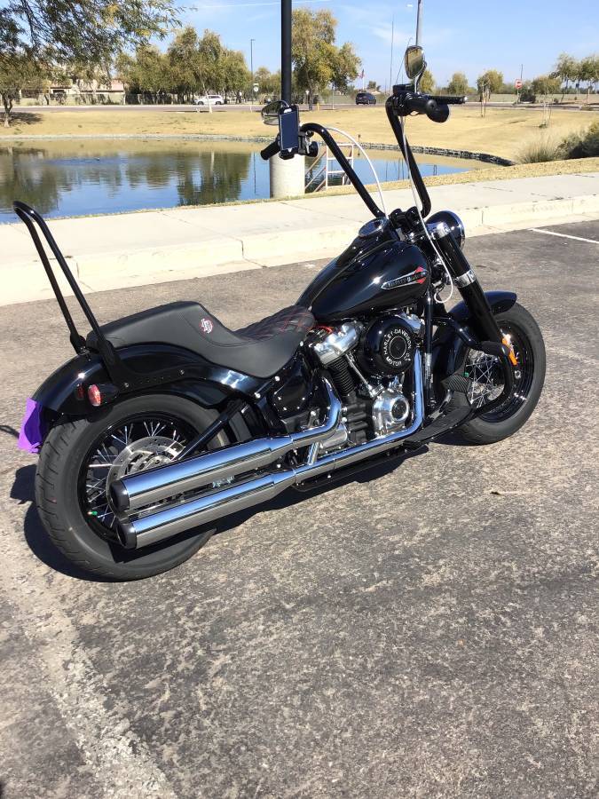 Custom harley softail slim with exile exhaust and shotgun shock.